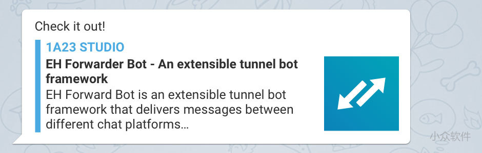 EFB 全称 ehForwarderBot,是一个可扩展的信息隧道机器人开源框架,支持通过聊天机器人从不同的 IM 工具收发信息,比如通过 Telegram 收发微信消息,通过 Telegram 收发 QQ 消息,通过 Telegram 收发 Facebook Messenger 等。