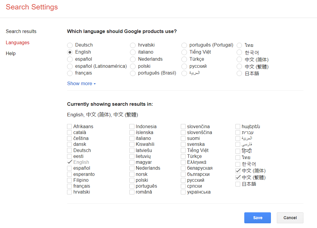 我的要求是平时搜索结果不过滤,需要找中文的结果,就是点击一下,