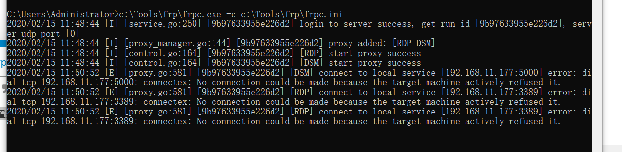 同样,如果客户端安装在 linux 上,同样的三个操作,只需要把上面三个命令中的 frps 替换为 frpc 。