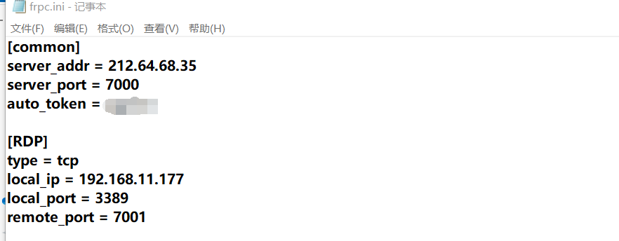 为了安全起见,请在 frps.ini 与 frpc.ini 配置文件的 common 部分添加授权: