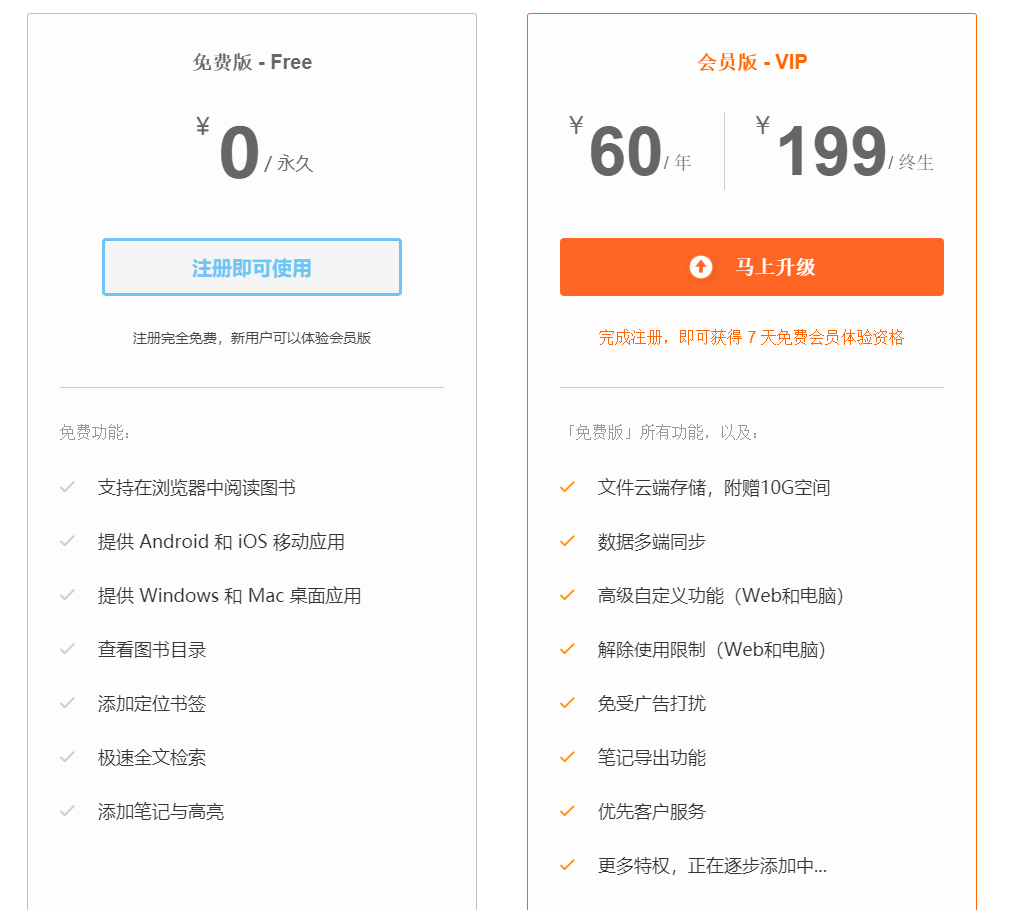 Neat Reader ,全平台制霸+云同步,功能基本都有。免费版除了不能导出笔记,其它功能基本够用。