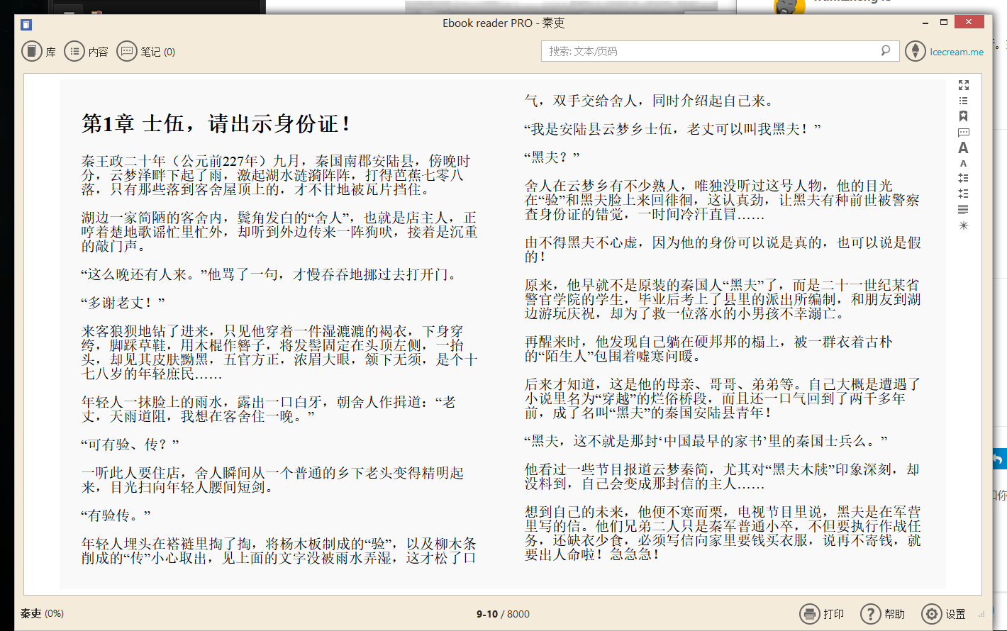 Icecream Ebook Reader,免费版一次只能导入三本书,而且UI有阴影计算坐标点的BUG,我个人并不喜欢。