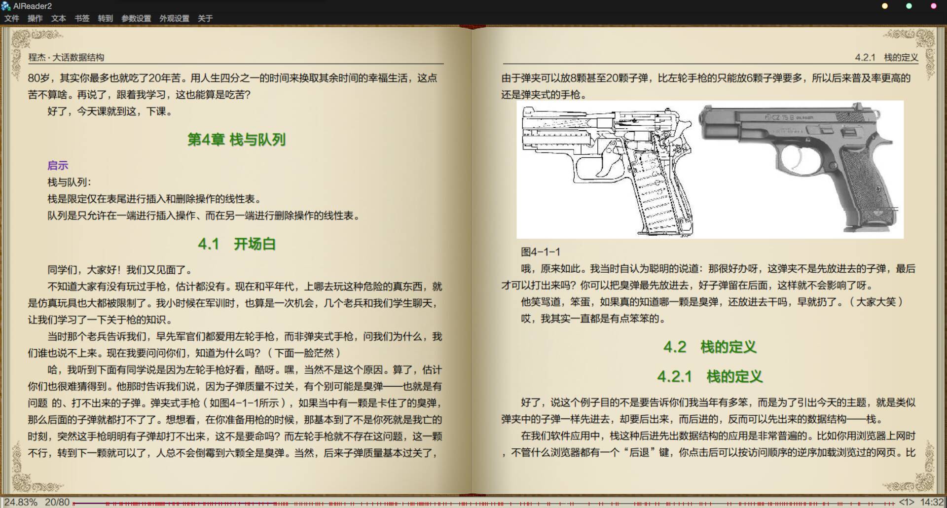 Chrome上的epub插件体验很差,上几个可以将阅读界面设置得毕竟好看的软件,SumatraPDF、AlReader2、iRead阅读器,都支持epub。其中最推荐AlReader2,拥有的功能最多,不过设置好要花一番时间。