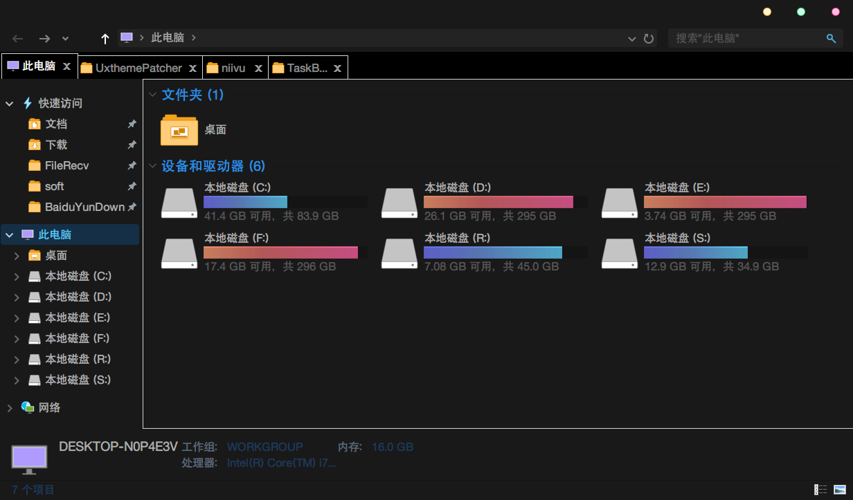 黑色主题下还会将everything、notepad等软件也变成深色模式,不过也有少数软件在深色模式下会变得很奇怪(界面黑白混搭)。