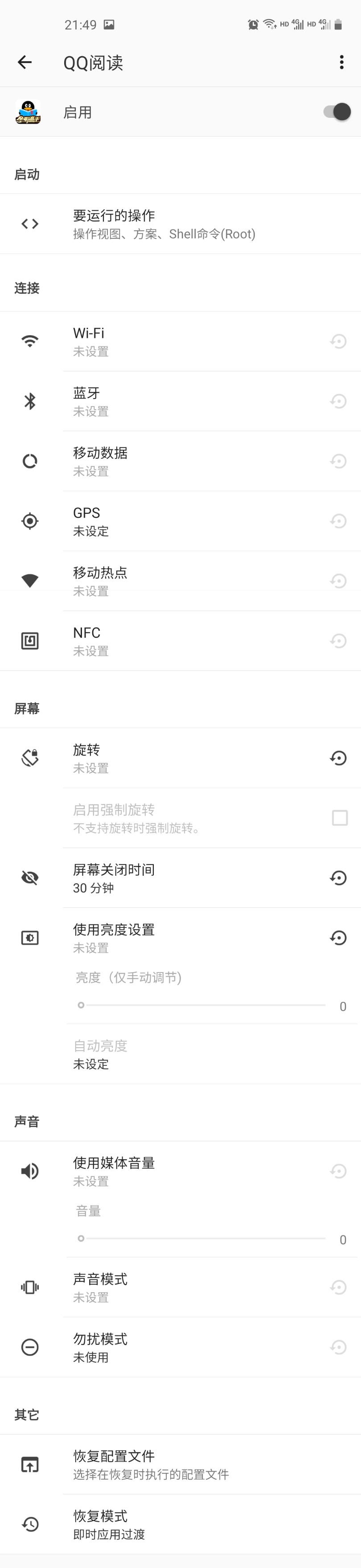 2. 支持基于前台App来控制(例如可以这样设置:某款App在最前端运行时,亮屏时间10分钟;其它App运行在最前端时,以系统设置为准)