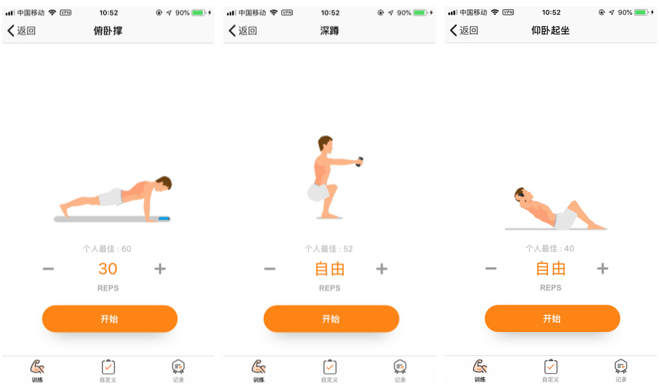 Lean 可通过手机/Apple Watch自带的各类传感器,用识别算法记录各个自重训练动作的次数,当你完成一个动作时,App 会发「滴」声并记录,通过跑步 App 记录的公里数一样,让用户获得满满的成就感。