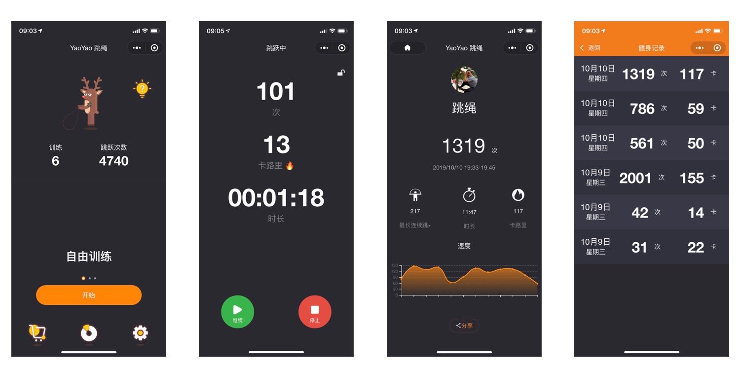 YaoYao-跳绳 是一个 Apple Watch 上的跳绳计数程序,它分析Apple Watch 自带的运动传感器数据,实现了跳绳自动计数,深受广大跳绳爱好者喜爱,但大部分人都没有Apple Watch,所以此次,我开发了微信小程序版:YaoYao 跳绳计数。它像 Apple Watch 版一样简洁,易用。