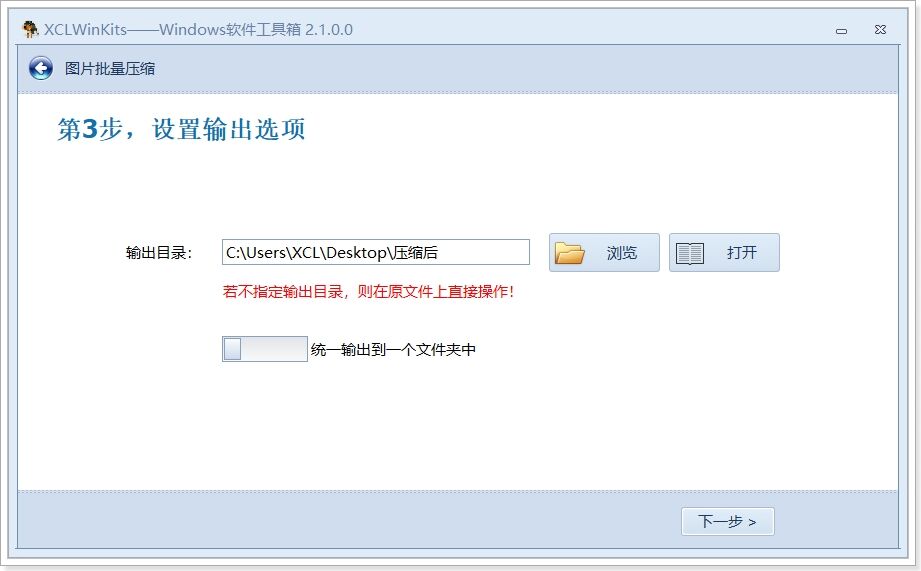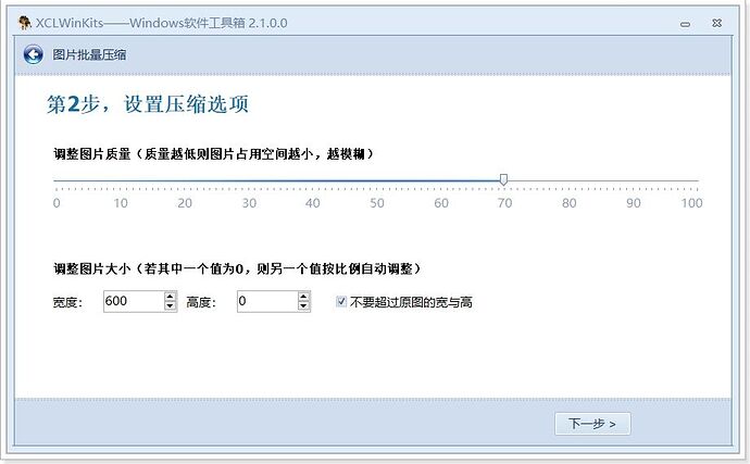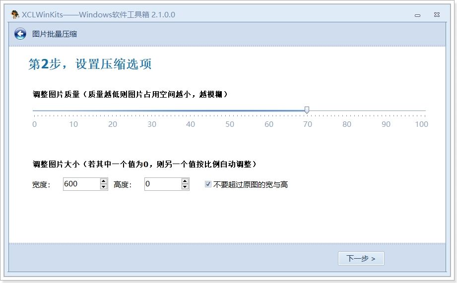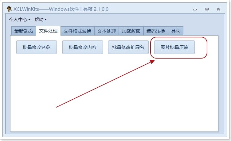 打开 文件批量替换修改及格式转换小工具集合XCLWinKits ,并选择其中的图片批量压缩功能: