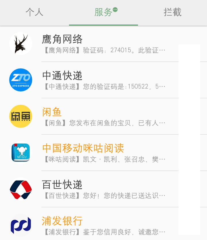 把日常的短信、广告短信、通知短信和验证码短信分组存放,我觉得还是挺有必要的,但是一直没找到能按预设的正则匹配规则自动对短信进行分组的短信 app。