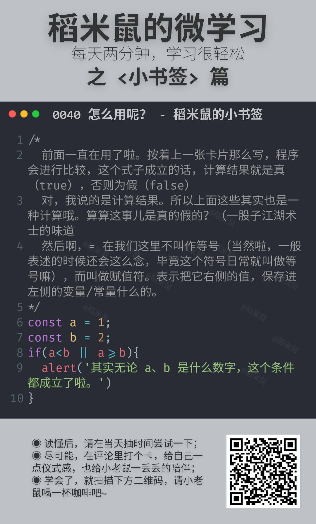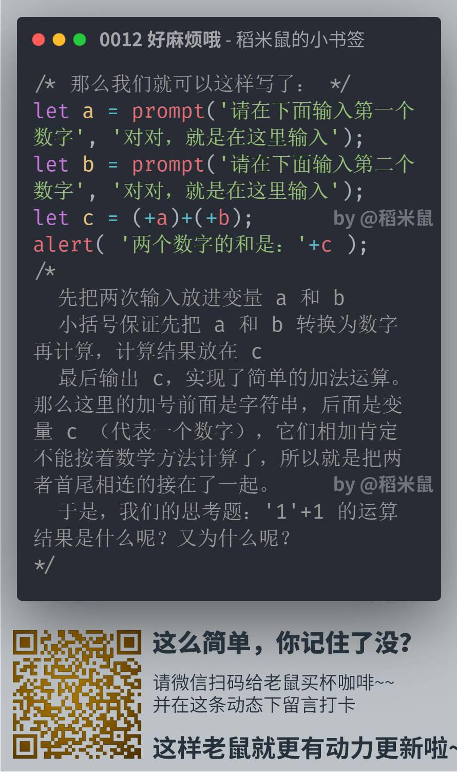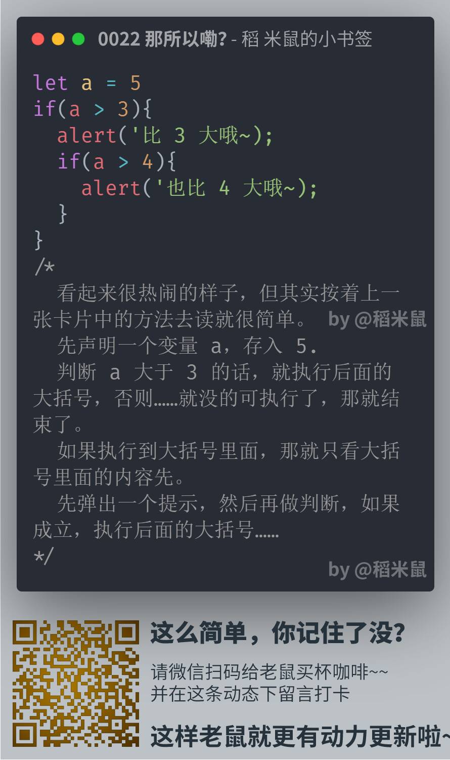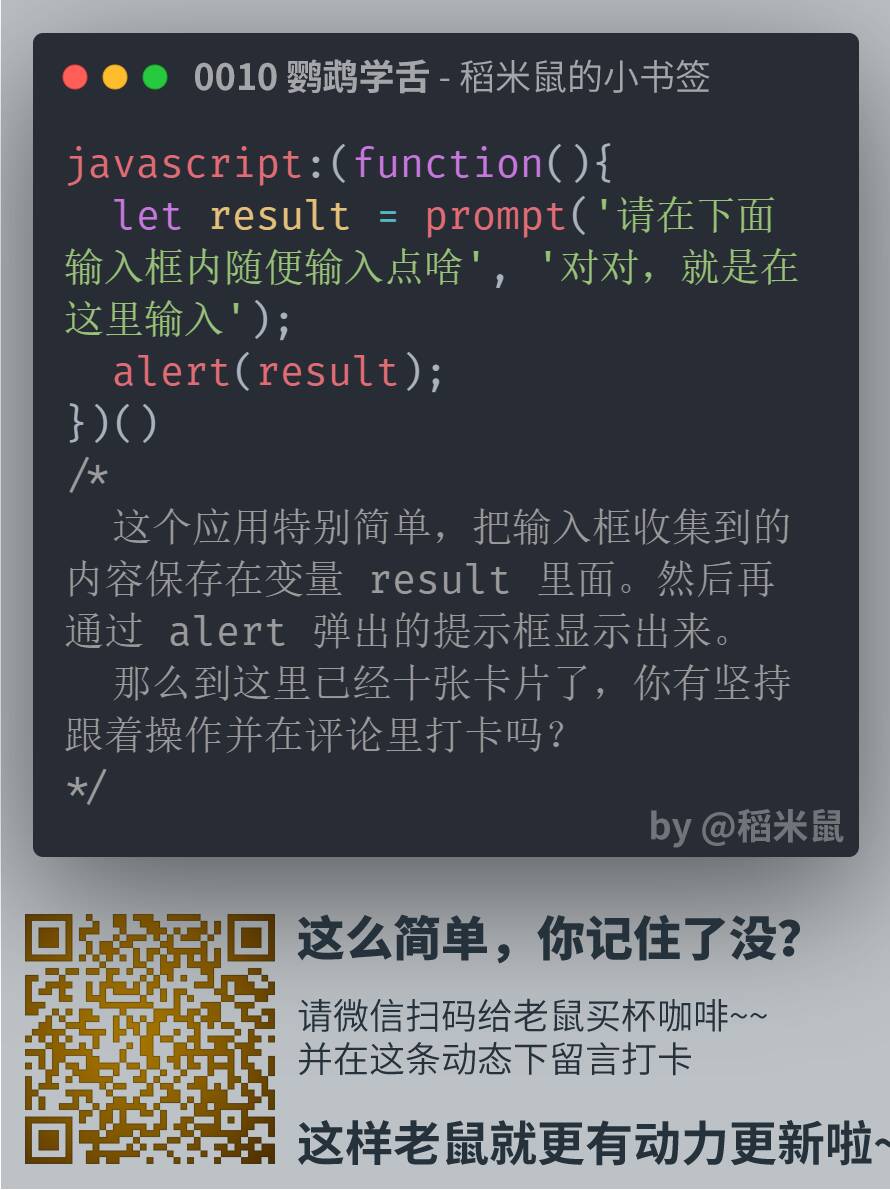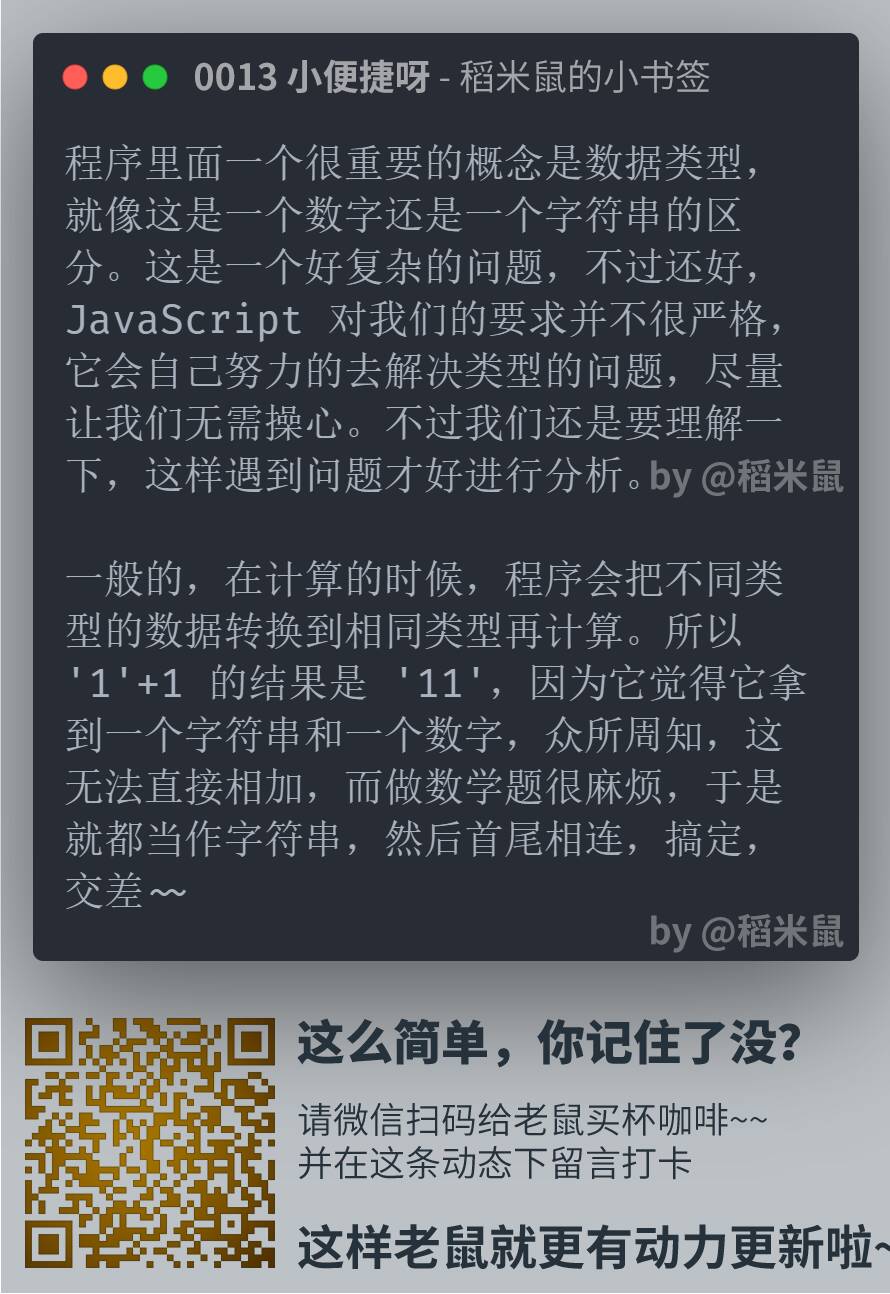所以,就有了这份小卡片,很小,很短……咳咳。两三分钟,了解一点一滴。算不上编程啦。但是学一点也许就能用得上,万一方便点,就不亏哦。