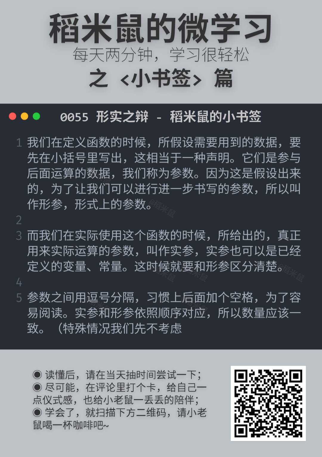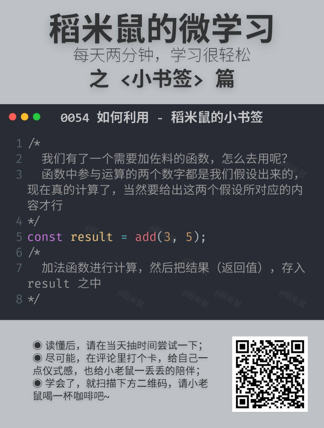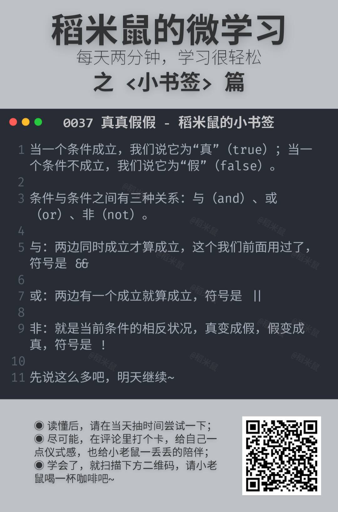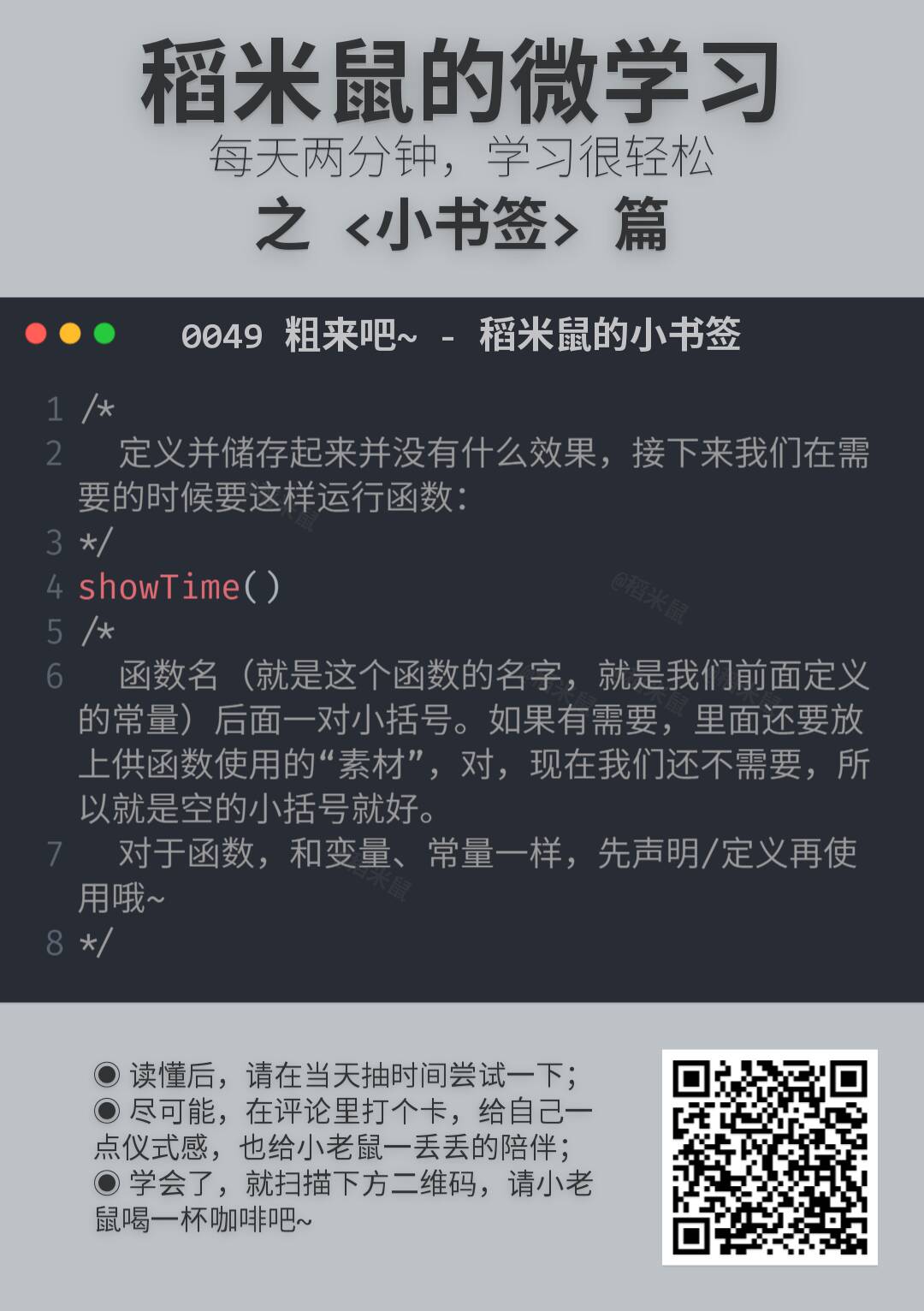 所以,就有了这份小卡片,很小,很短……咳咳。两三分钟,了解一点一滴。算不上编程啦。但是学一点也许就能用得上,万一方便点,就不亏哦。