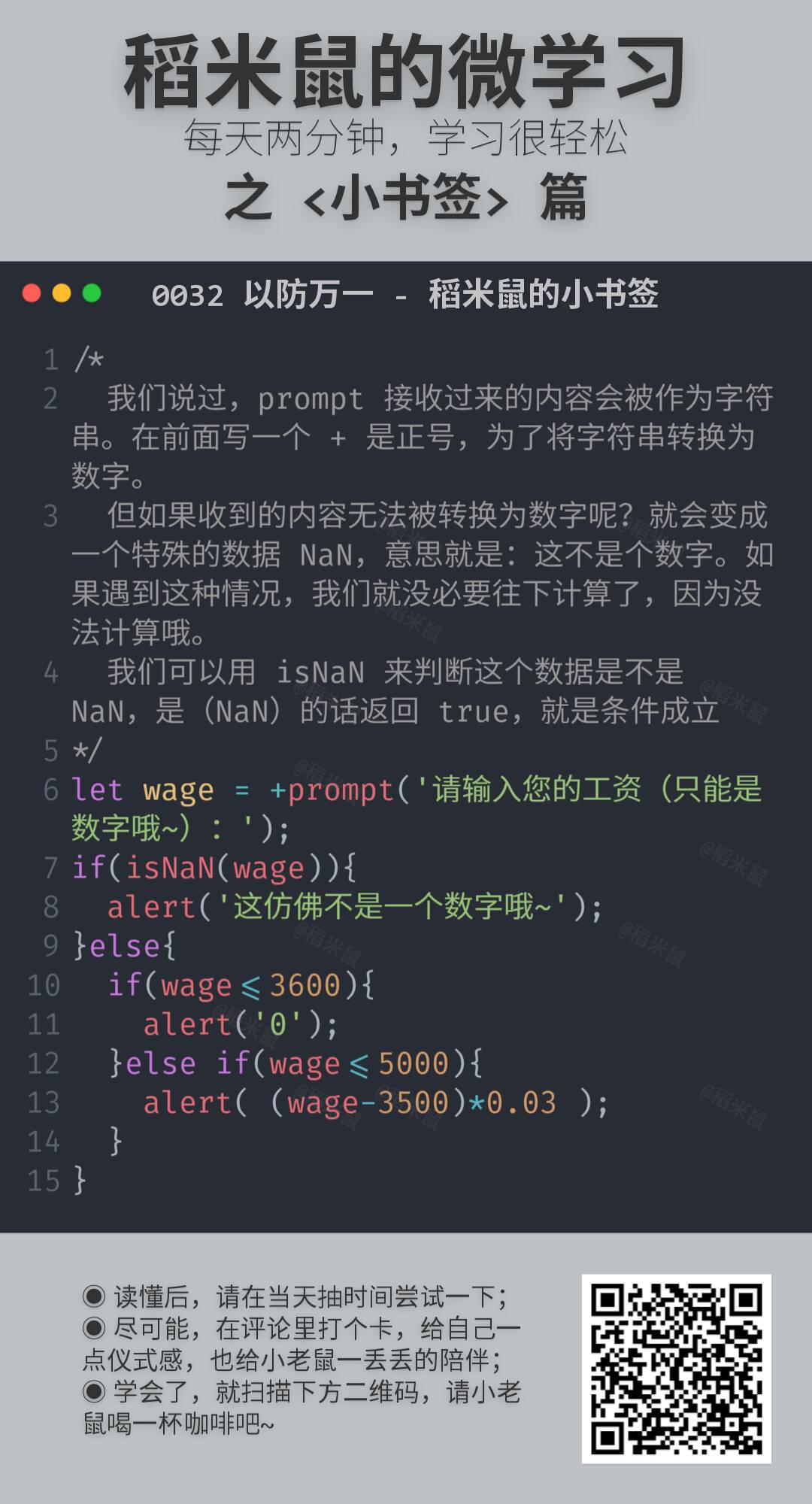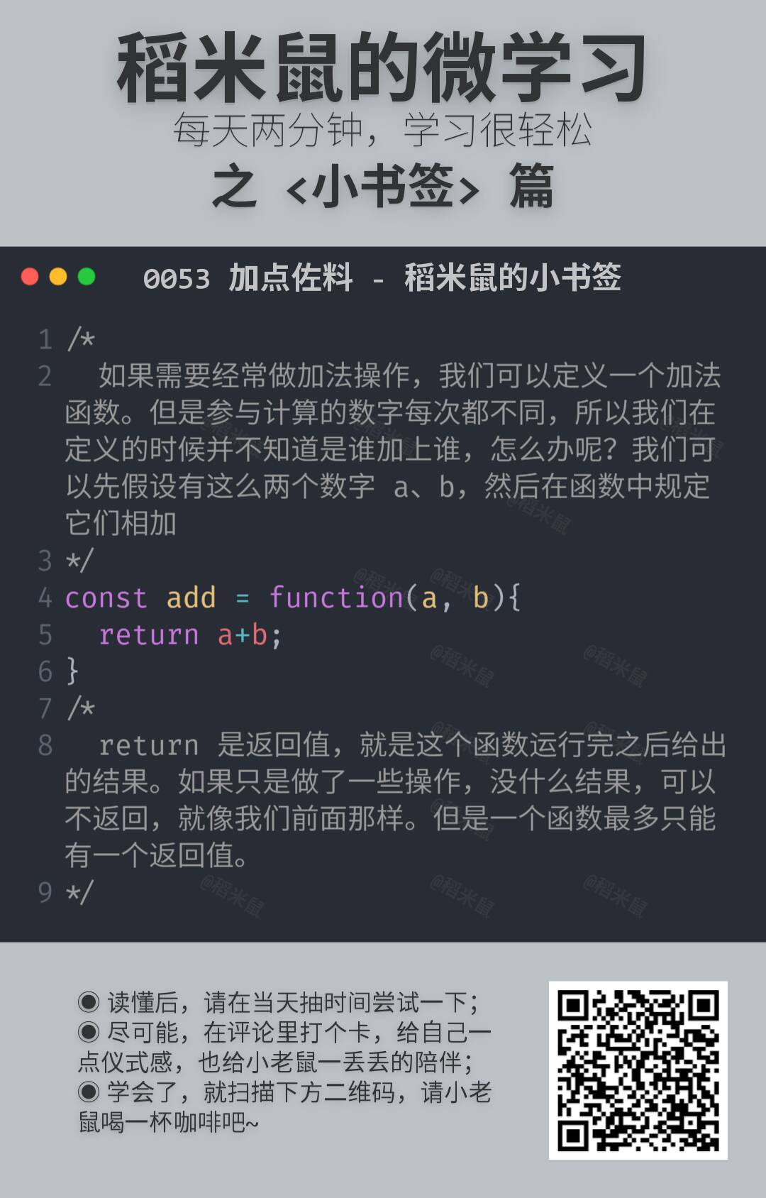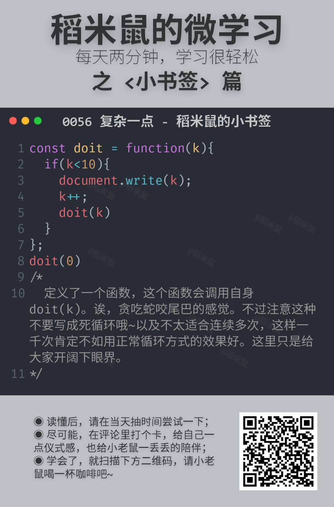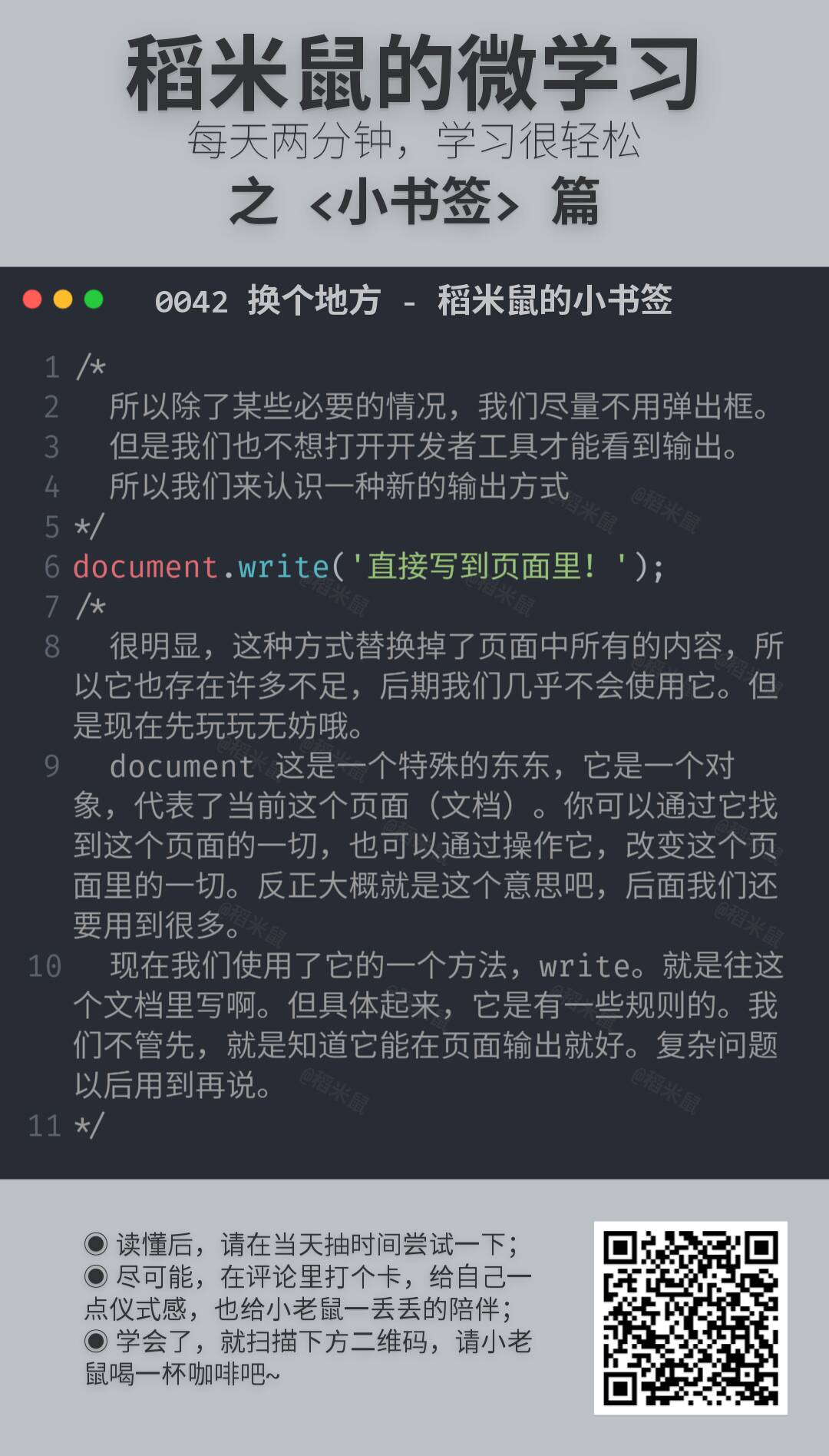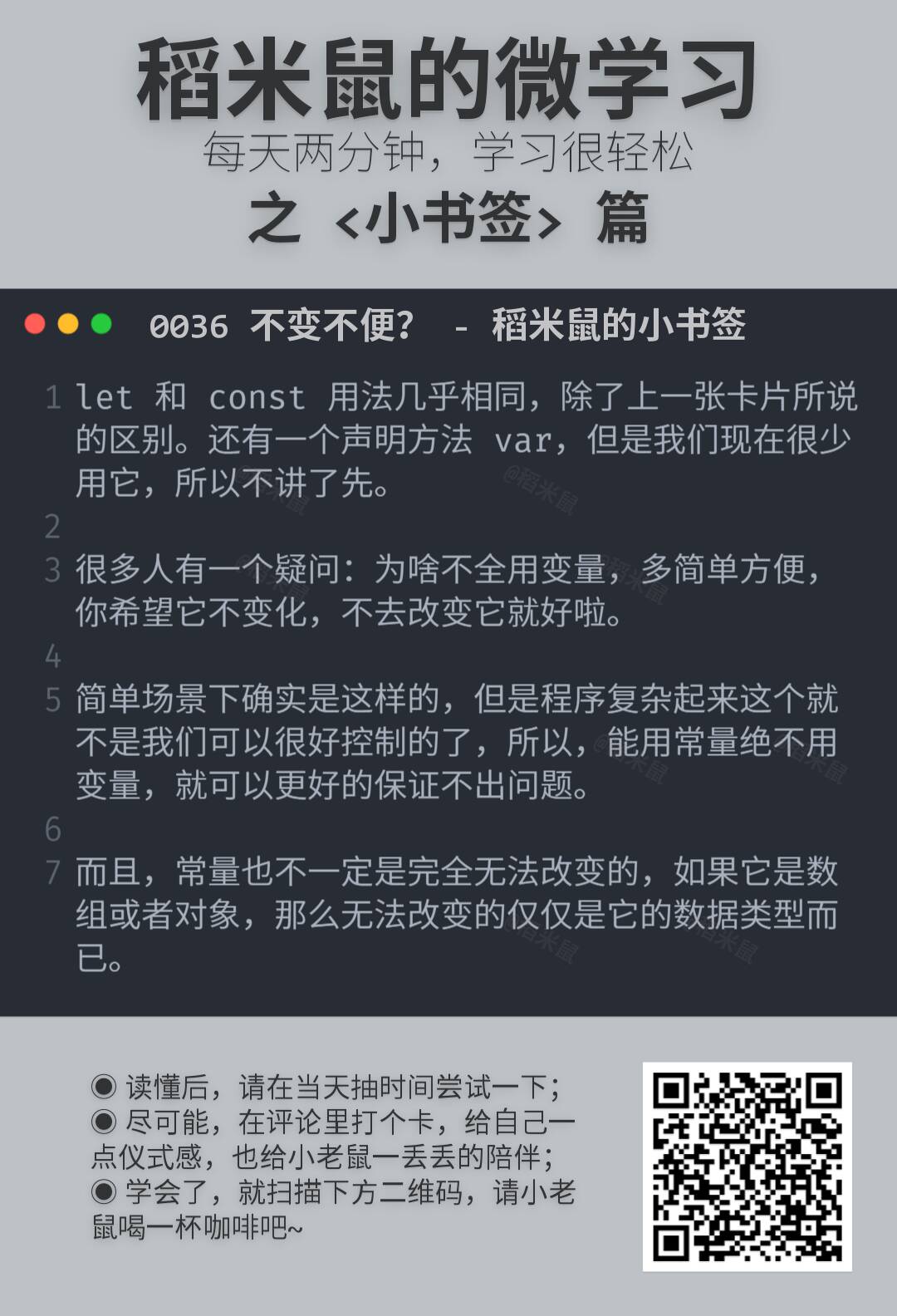 所以,就有了这份小卡片,很小,很短……咳咳。两三分钟,了解一点一滴。算不上编程啦。但是学一点也许就能用得上,万一方便点,就不亏哦。