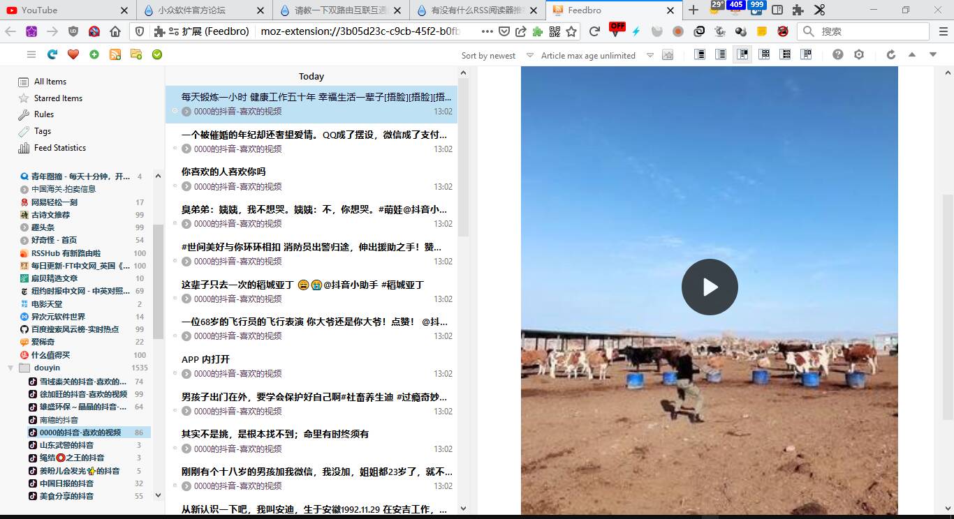 feedbro也尝试过了,有一次不小心把feedbro的indexed DB数据库给清空了。我需要导出功能、同步功能,于是尝试自己搭建。TTS搭建太过麻烦,所以使用FreshRSS,现在想找个比较美观的客户端。