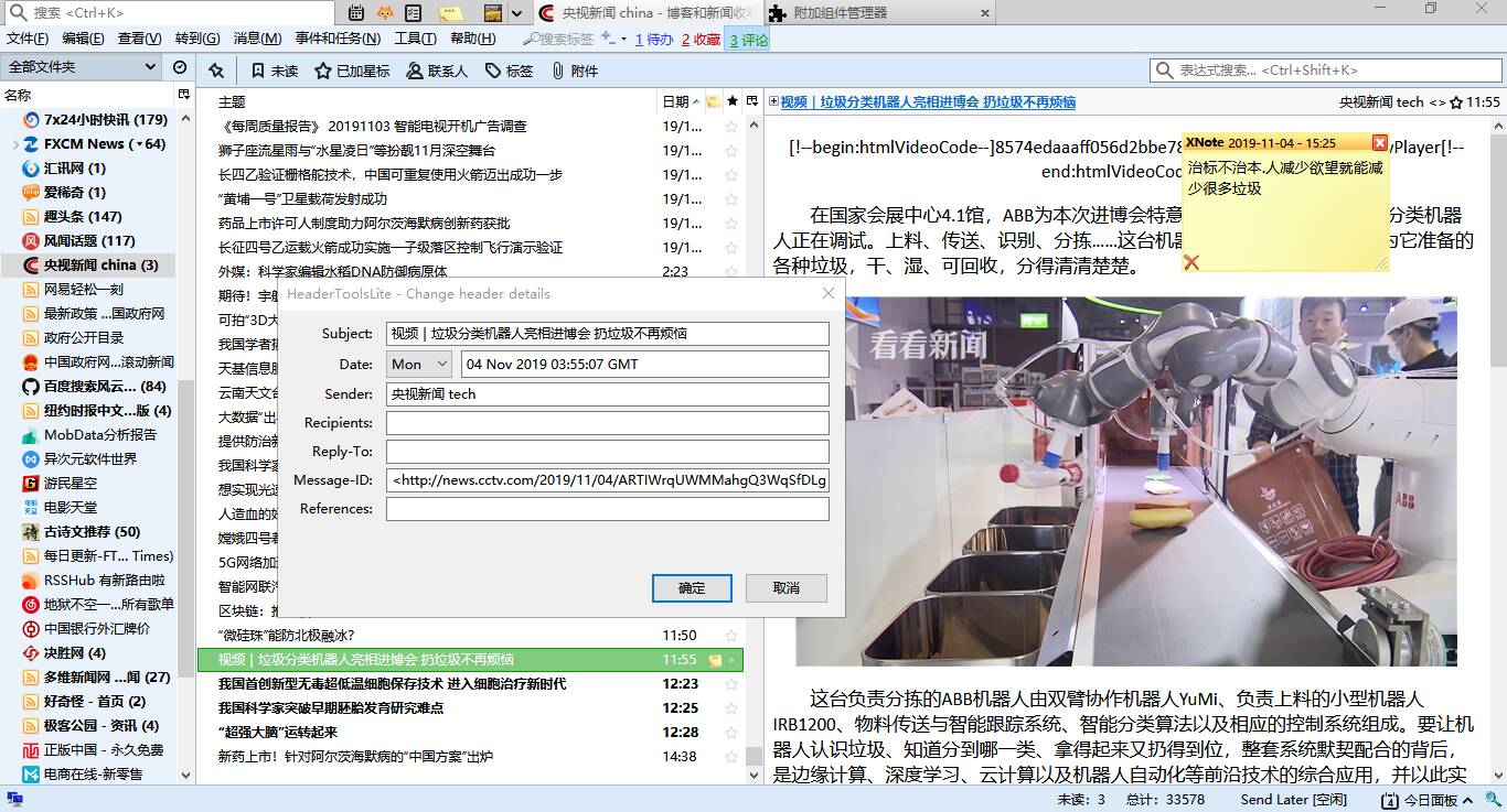 你目的时找rss阅读器呀,thunderbird如果发邮件卡死,那就不用它发邮件.只用rss这个功能就好.强迫症一来,就得耗神费事,事还不一定办得成.