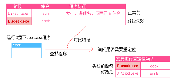 但我希望能有这样的功能:输入refresh,检测当前运行的进程,顺带对比路径失效项目的特征值,如果一致就说明程序还是同一个程序,只是路径变了,提醒可以进行重定位。实现一种半自动化的方式。