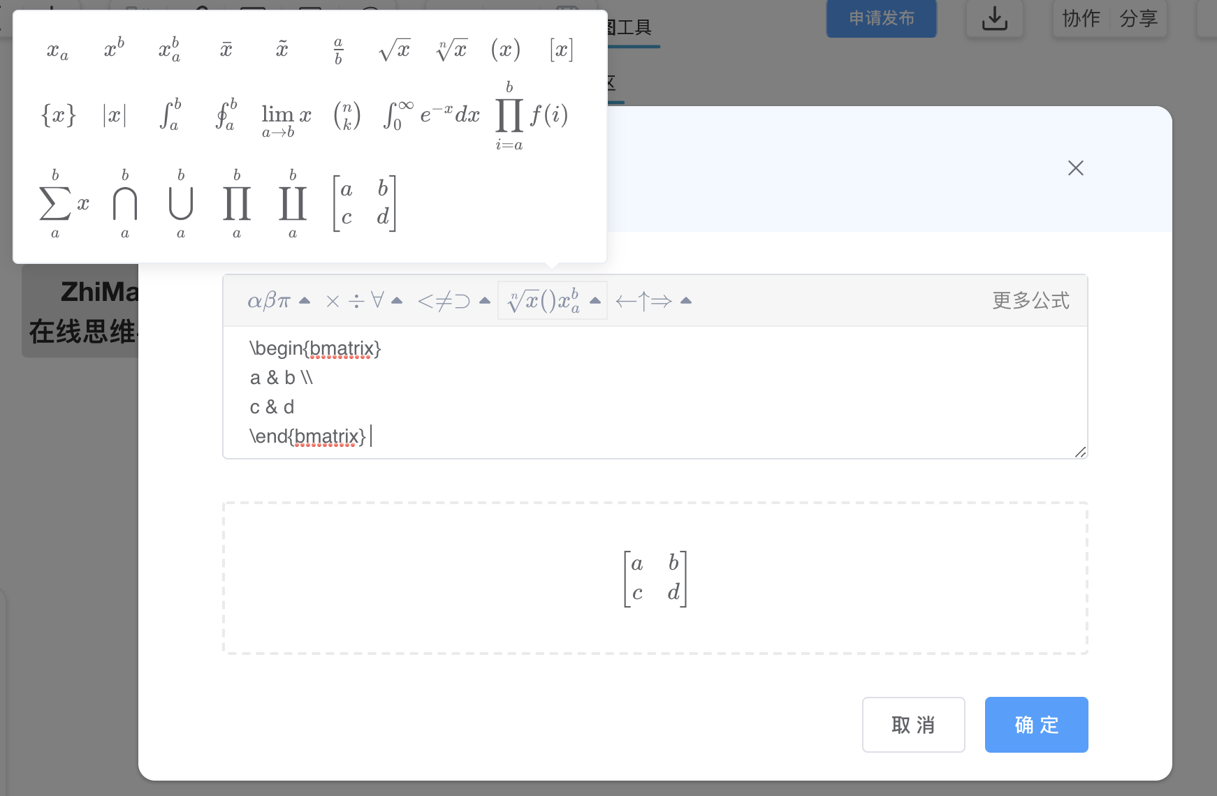 最心水的是支持LaTex,而且可以预览,也提供了一些基础公式: