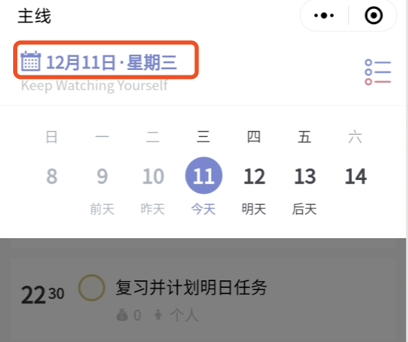 点击左上角日期,即可快速调整本周计划,不仅回顾过去,还可以对未来及时调整,更快地提高了效率。