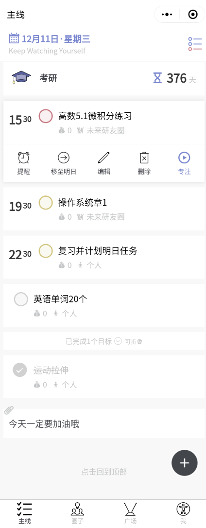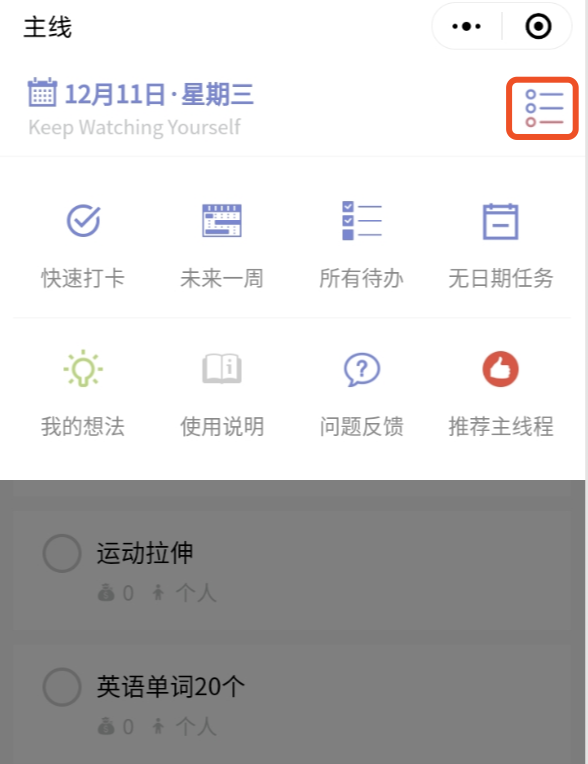首页,我们称之为【主线】,相当于一个待办清单。帮助我们在实现目标的过程中合理地安排我们每天的计划。