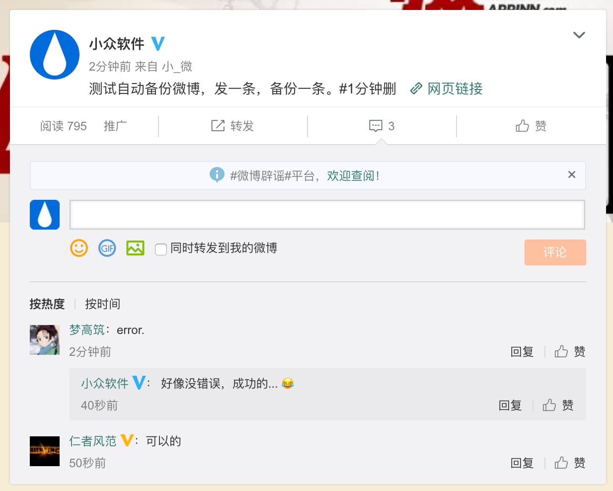 没事喜欢在微博话唠,发的多了之后就希望自己说过的话,贴过的图,分享过的链接能够自动备份到自己云存储服务,这样就不怕消失,便于查阅了.