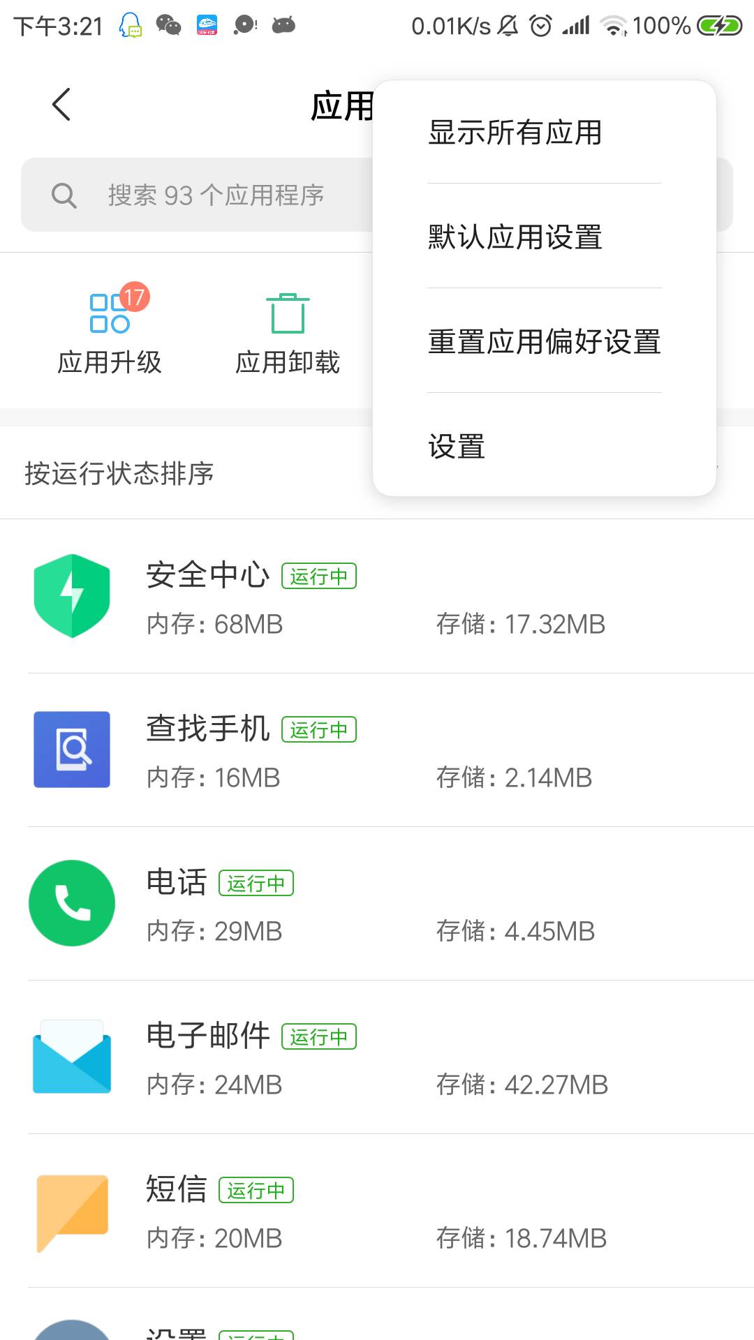 首先,点击设置,进入"更多应用",点开右上角,有"重置应用偏好设置",点击即可。