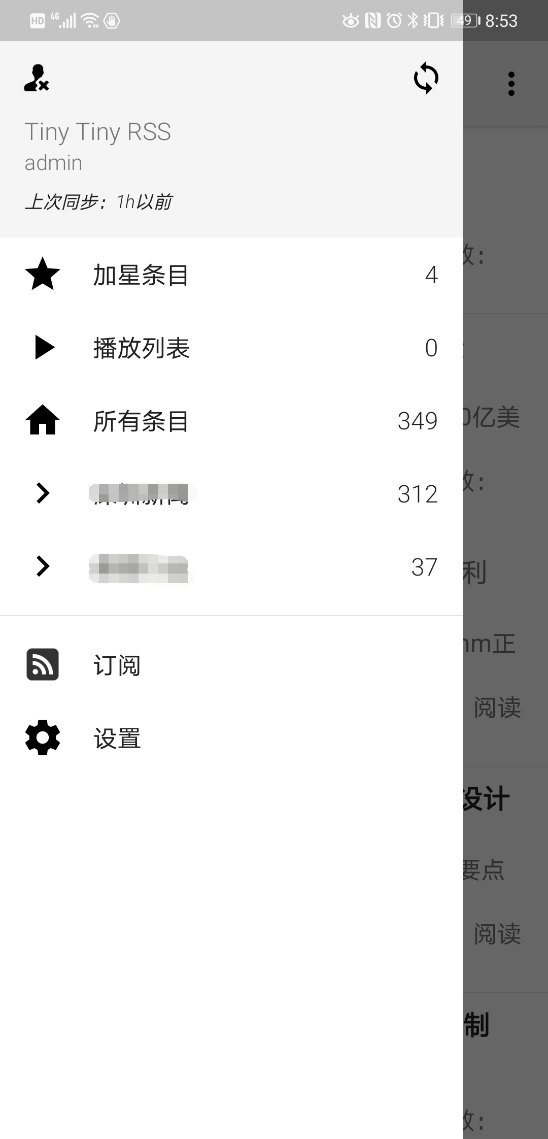 - 支持多个RSS订阅服务,包括feedly等8种rss服务, 当然包括自行搭建的tiny tiny rss.