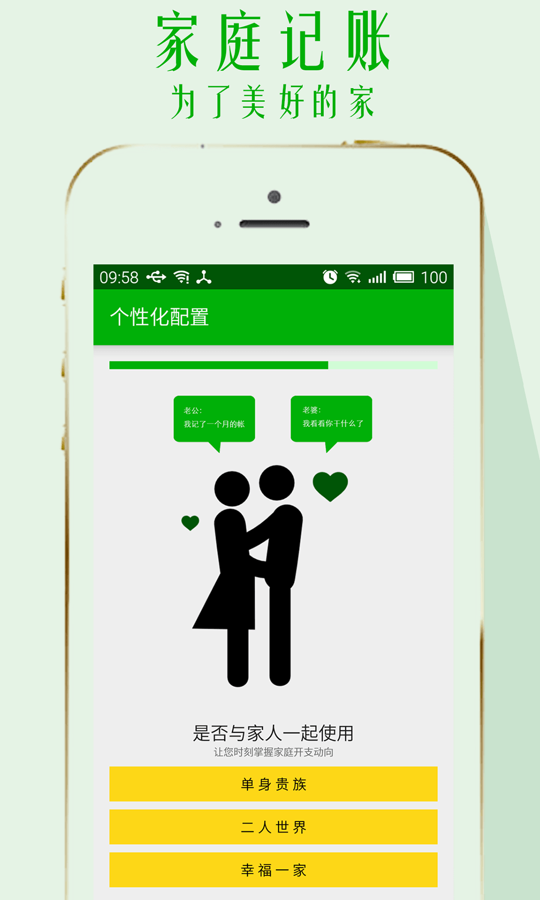 【家庭记账】家庭中的夫妻二人,情侣二人,可以一方记账,另一方直接云同步查看,让您随时随地掌握家庭开支动向。