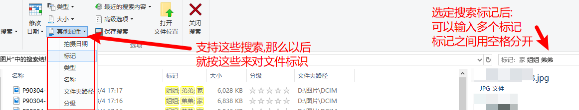搜索图片呢,可以多个条件叠加,还可以多个优化条件混合搜索,比如我可以搜索 包含 家,姐姐,弟弟 三个标记的照片,并且同时可以指定