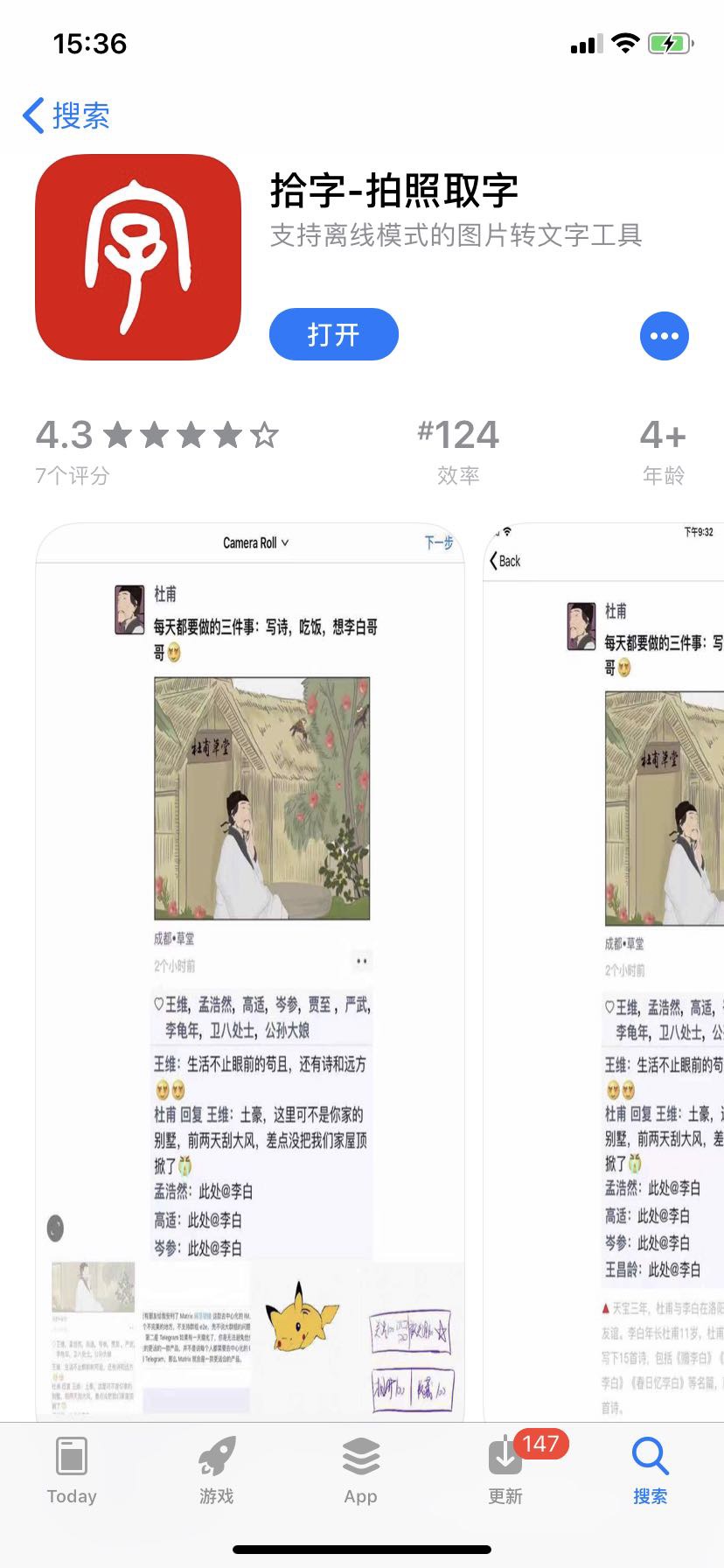 写了一个图片转文字的工具 叫做拾字 商店地址