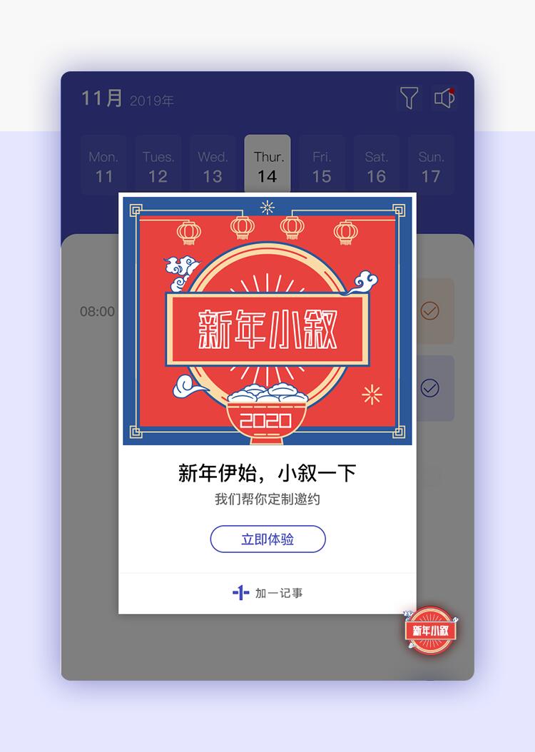 小程序搜索加一记事,首页点击“邀约”图标即可快速创建邀约提醒