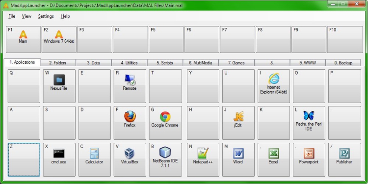 带有快捷健功能。当标签页获得焦点后,使用快捷键就可以运行软件,因为每个标签页上30的程序,每个都对应一个键盘上的英文字母,顺序和键盘一样,不需要刻意去记快捷键。