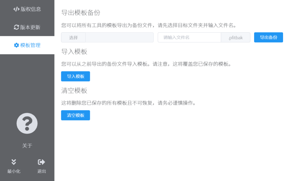 除了部分工具支持将模板导入导出为模板码用于保存和分享外,还可以将所有工具的模板导出为备份文件以供备份和恢复。