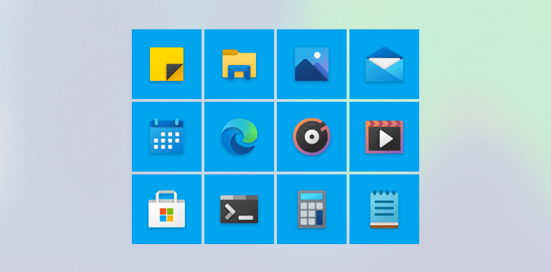 是啊,那几个微软彩色图标,都是微软新版的图标,不过微软还在一点一点更新,还没有矢量图,所以作者网上找了一些图标给高清放大处理了一下。