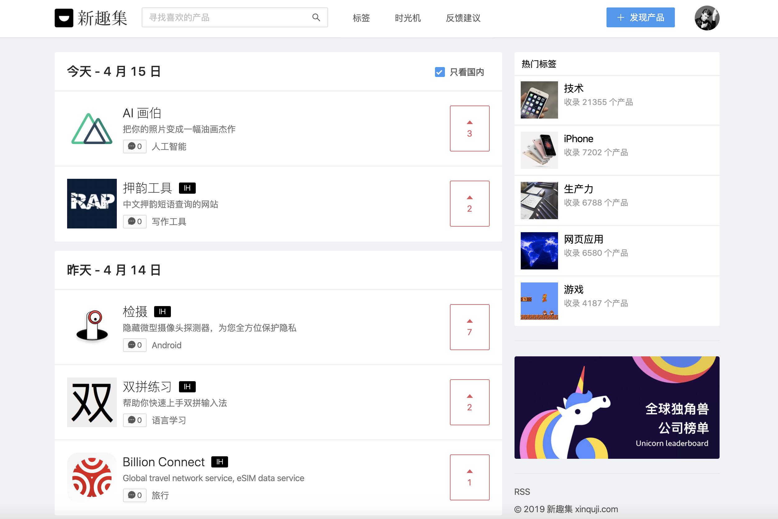 在分享国内产品的同时,也会实时同步 Product Hunt 上的国外产品。