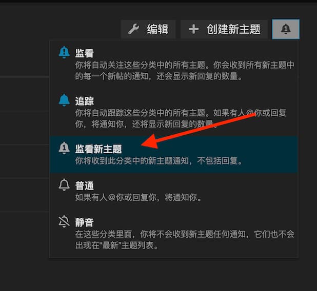 选择 1 以上级别就好,该分类不允许回复,所以只会在有新帖的时候有邮件。