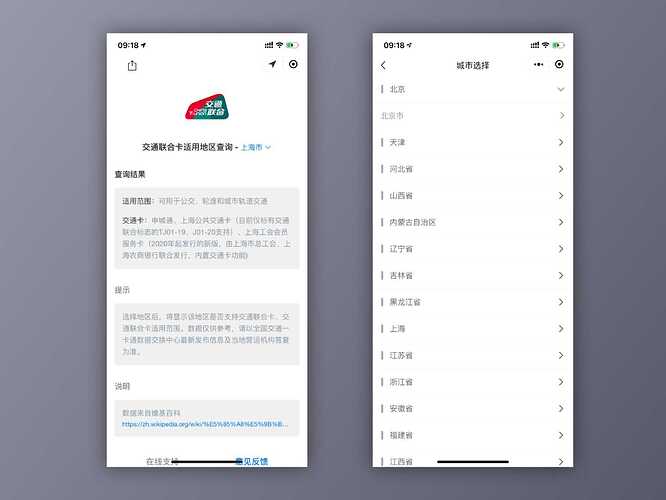 又又一款小程序,用于交通联合卡适用地区查询