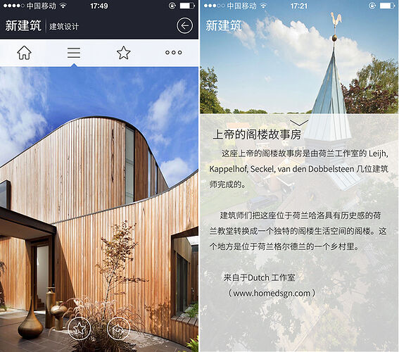 当然,「新建筑」最吸引我的除了高清大图和流畅的使用体验外在软件内对左右智能图片都进行了优化处理,省流量但不省质量。
