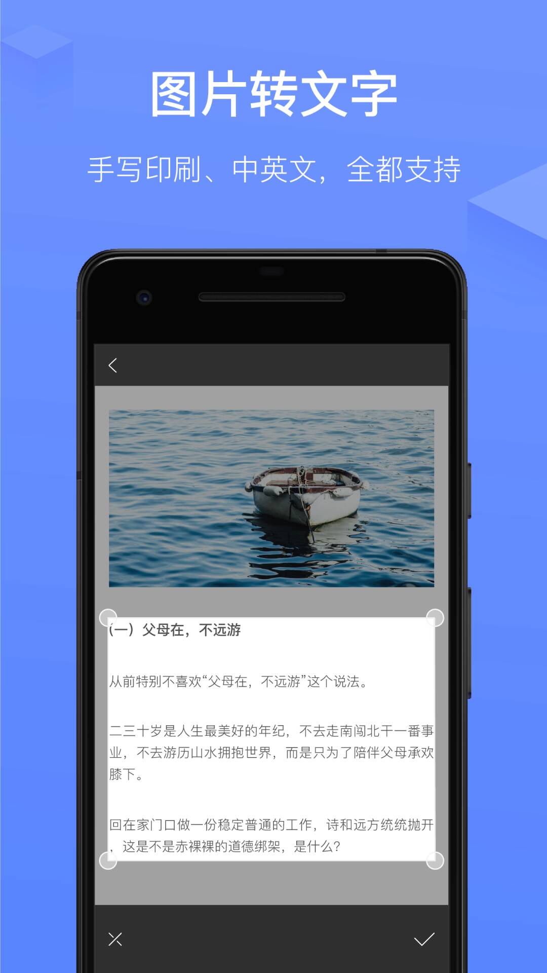 一键拍照转文字,手写、印刷、中文、英文,通通支持。