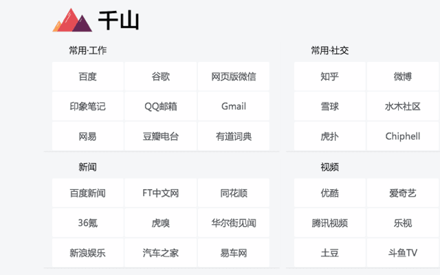 ###千山新标签页是一个简洁优雅的新标签页扩展,支持自定义和快捷键两大特性