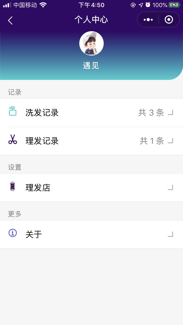 - 个人中心,可以链接到所有洗发记录/理发记录,可以链接到理发店设置页面