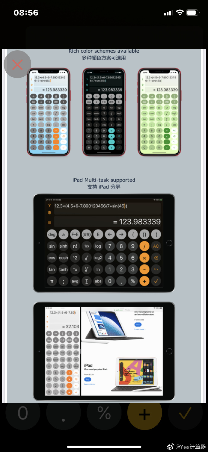 ● 比 iPhone 内置计算器好用,支持 iPad 分屏使用。