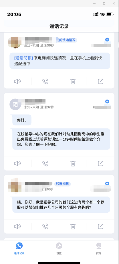 - 首页,可以看到通话状况,点击进去可以看通话内容