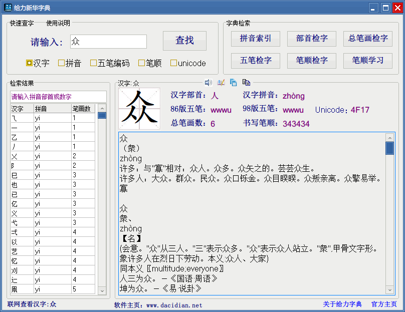 求一个本地字典软件,支持拼音部首笔画查询.支持繁体查询,