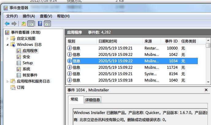 控制面板,管理工具,事件查看器,windows日志,应用程序