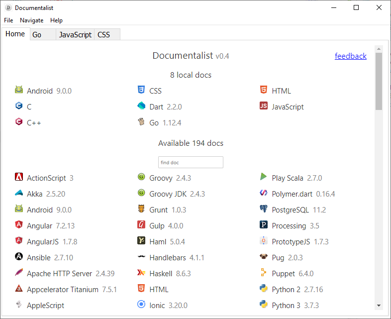 该程序提供一套快速、离线使用的知识库,包含 190 多个 API 的资料。来自 Sumatra PDF 的开发者。