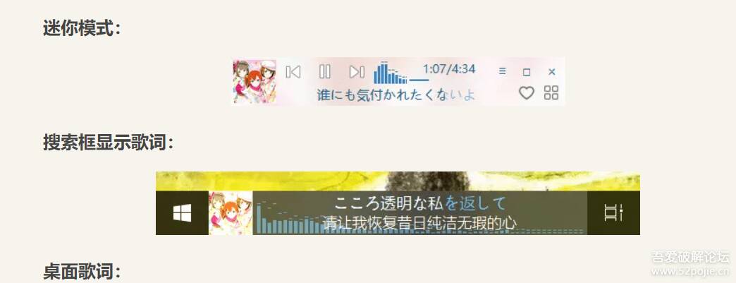 网易云音乐的迷你模式也可以放任务栏