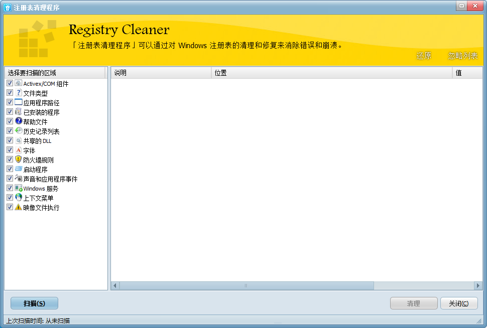 - 注册表清理,垃圾文件清理,空文件夹清理,快捷方式修复