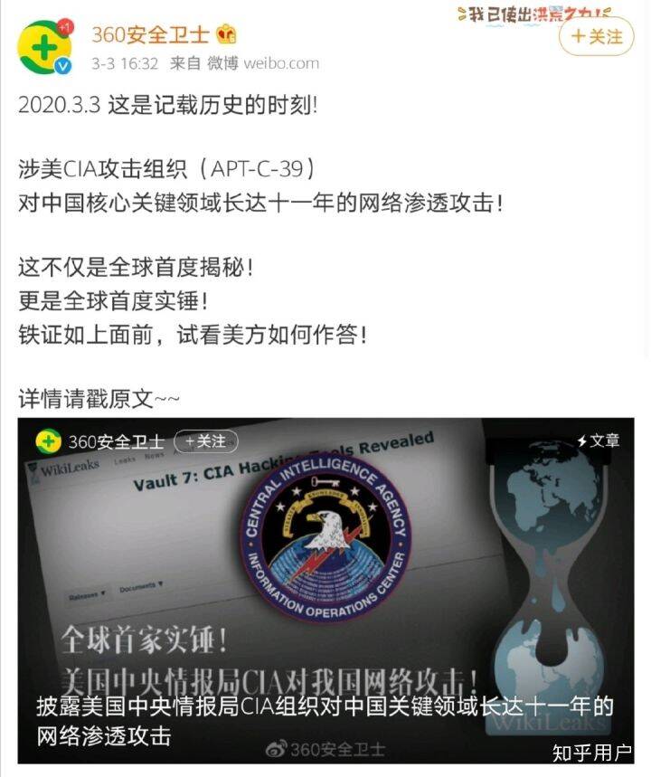 微博上有人说是因为360监控用户的过程中发现了美帝什么机构攻击天朝的证据,然后他就上了实体清单