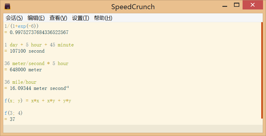 如图所示,可以输入算式,方程,函数。在里面内置的例子里面还有更多,像是什么单位换算啊,角度啊,逻辑啊都可以。