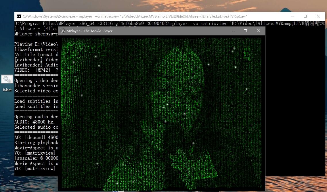 单纯播放器还是推荐 MPV,不过它爹 mplayer 也很好玩,用 “mplayer.exe -vo matrixview 视频文件名”能用黑客帝国特效播放, 换成 caca 滤镜还能用彩色 ASCII 字符输入视频。