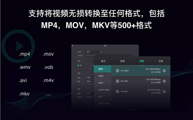 将任何视频转换为 MP4、MOV、3GP、VOB、MKV、M4V、WMV、AVI、MPG、FLV、F4V、SWF、TS等任何视频格式